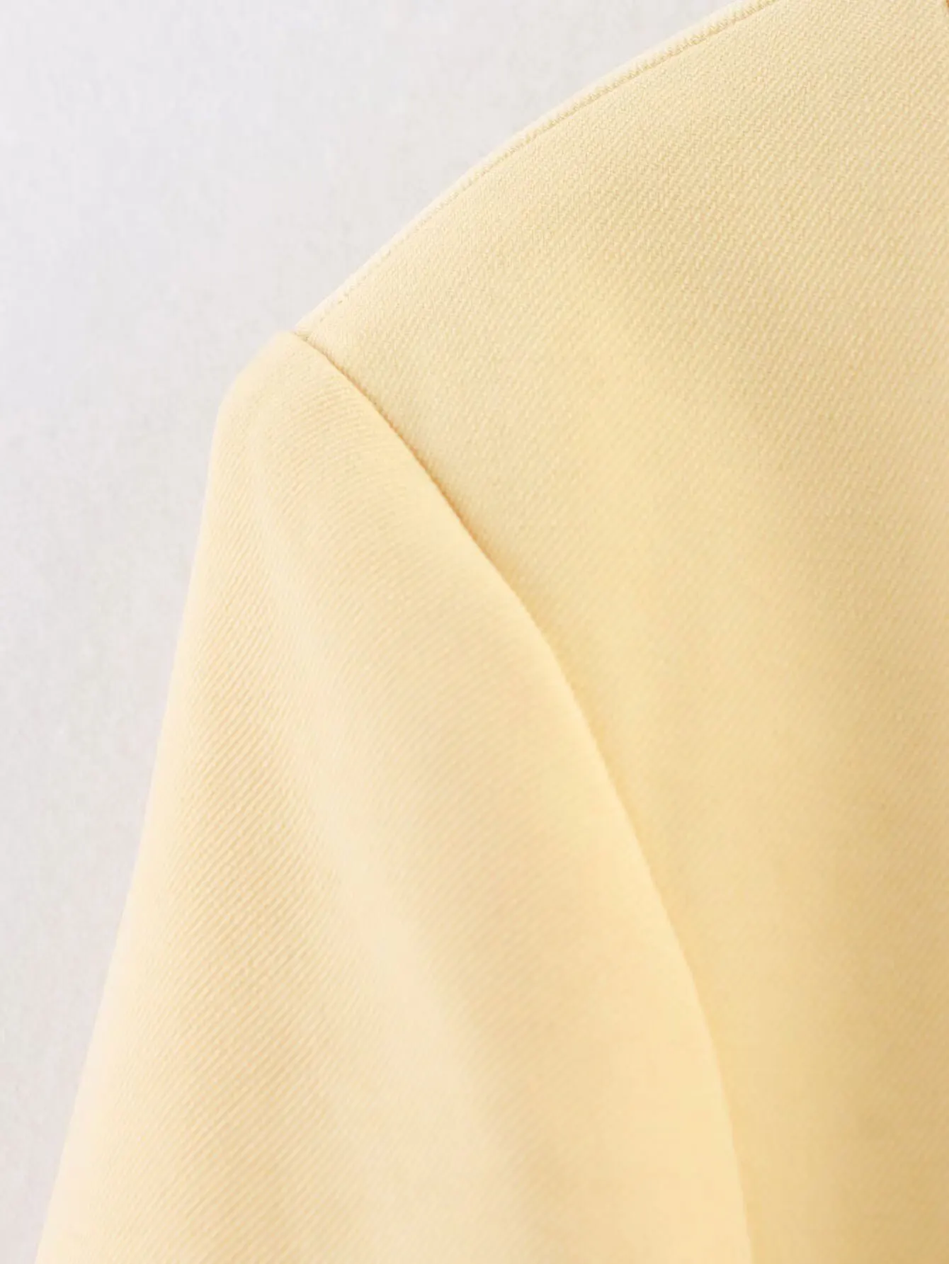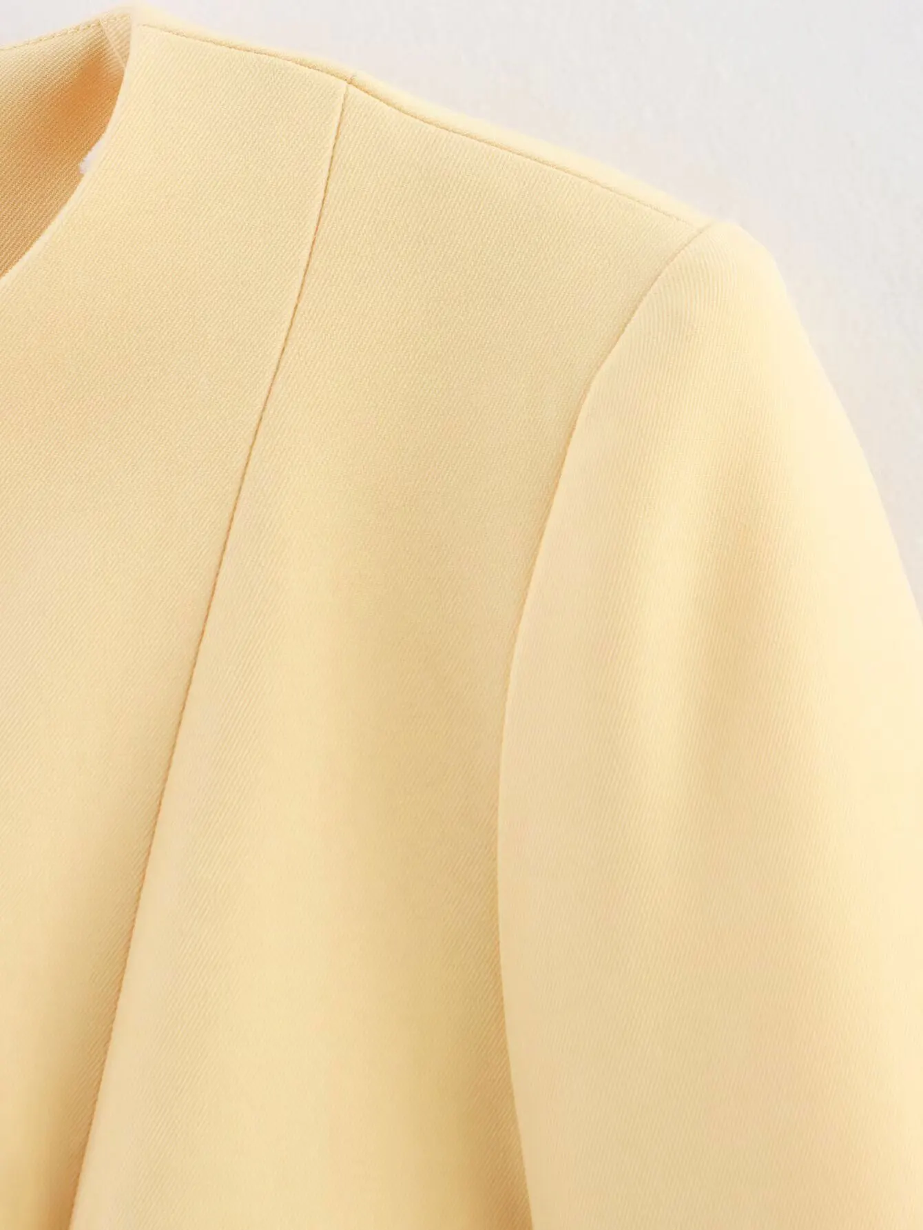 Blazer Feminino Amarelo Manga Longa Elegante para Escritório e Casual